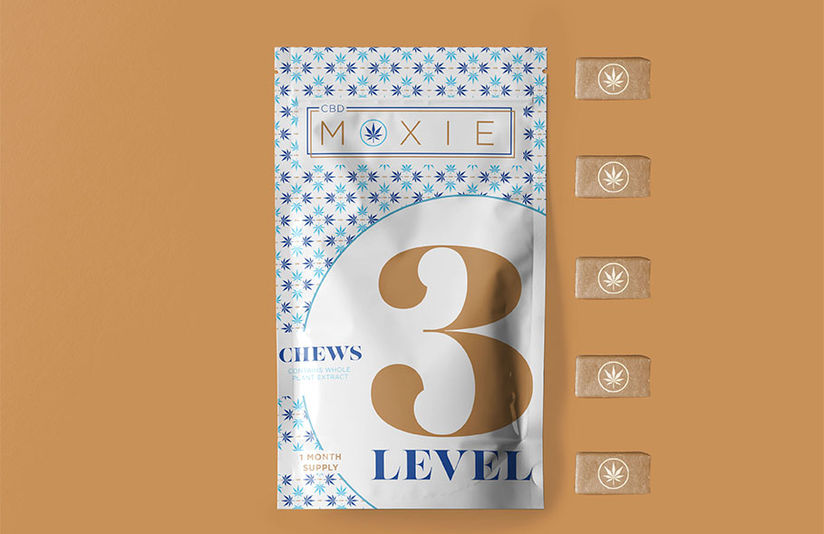 CBD Moxie is an online medicinal CBD (cannabidiol) brand for people in the U.S. The branding is meant to reflect the contemporary usage of this product; a new medical look for new medical merchandise. The varying levels of potency are referred to as phases or levels (“What’s your level of Moxie?”). Each phase is shown in large lettering on the packaging, mixed with a pattern developed from elements of the logo.